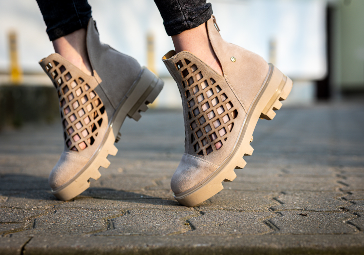 - Botki w odcieniach beżu i brązu – doskonale komponują się z letnimi i wiosennymi stylizacjami.