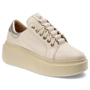 Beżowe Sneakersy Armodo Modne Skórzane Buty Damskie