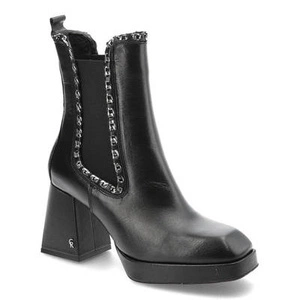 Botki damskie Carinii, cholewka z naturalnej skóry zapięcie na suwak ozdobna aplikacja wzdłuż cholewki stabilny obcas, czarny, B8535-E50