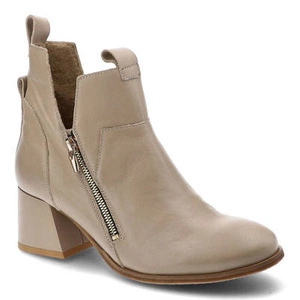 Botki damskie Lamanti, cholewka ze skóry naturalnej zapięcie na suwak stabilny obcas gładka forma, beż, 850-172