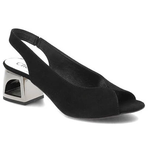 Sandały damskie Chebello, naturalna skóra zamszowa z odkrytym przodem regulowanym paskiem z tyłu oraz stabilnym obcasem, czarne, 2291_037-000-PSK-S22