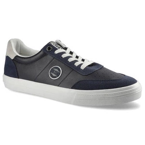 Trampki damskie Big Star, Wykonane z połączenia skóry naturalnej i materiału tekstylnego z gładką perforowaną cholewką klasycznym wycięciem sznurowanym zapięciem oraz płaską stabilną podeszwą o prostym profilu, granatowo-białe, II174012