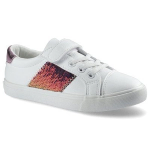 Trampki damskie Big Star, skóra ekologiczna z cekinową wstawką i sznurowaniem zakończonym paskiem z rzepem na płaskiej podeszwie, biało-różowe, FF374080