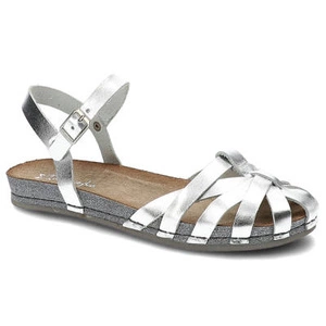 Sandały damskie Maciejka, wykonane z materiału o metalicznej powierzchni z wieloma cienkimi paskami na przodzie regulowanym zapięciem, srebrne, 03074-35-00-0