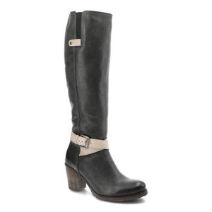 Kozaki damskie Szydłowski, dwukolorowa skóra licowa z gumowym ściągaczem zapinanym suwakiem na boku, grafitowo-beżowe, 1160-Grafit-Bez