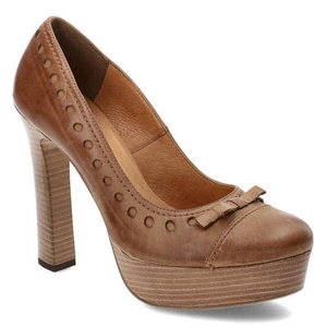 Półbuty damskie Szydłowski, skóra naturalna z uroczą kokardą na palcami i z wysokim stabilnym słupkiem, brązowe słomkowe, 181-Brazowy-Slomka