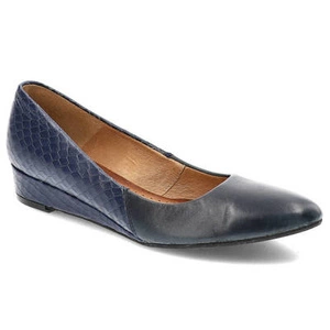 Czółenka damskie Maciejka, ze skóry naturalnej wsuwane i na płaskiej podeszwie, granatowe, 01995-33-00-1