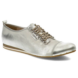 Półbuty damskie Libero, metaliczna naturalna skóra licowa z ozdobnym sznurowaniem, niklowe, 4995-125-139