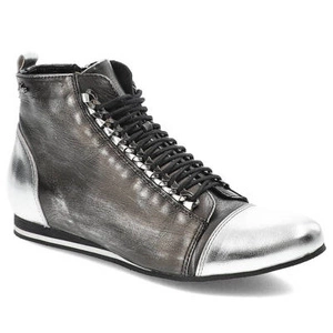 Botki damskie Libero, metaliczna naturalna skóra licowa z ozdobnym sznurowaniem, nikiel-srebrne, 4925