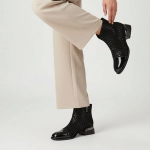 Botki damskie S. Barski, na stabilnym klocku i skórzaną cholewką we wzory, czarne, JC52-862