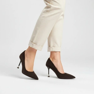 Czółenka damskie Chebello, eleganckie zamszowe na wysokiej szpilce, brązowe, 5021_-105-000-PSK-S423
