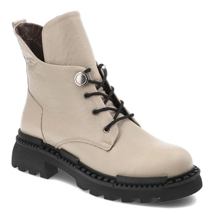 Beżowe Botki Artiker Damskie Skórzane Obuwie