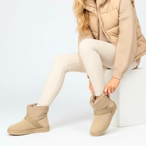 Śniegowce damskie Big Star, ze skóry zamszowej z elastycznymi wstawkami po bokach wsuwaną konstrukcją zabudowaną cholewką, beżowe, KK274617