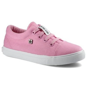 Trampki damskie Big Star, z klasycznym sznurowaniem uzupełnionym paskiem na rzep gumowym noskiem oraz płaską podeszwą z wyraźną fakturą, jasnoróżowe, FF374069