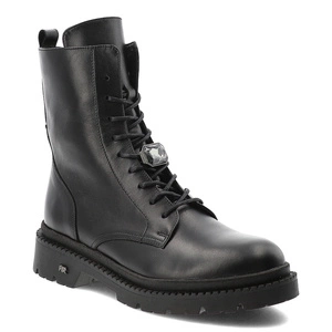 Czarne Trzewiki Karino Damskie Skórzane Ocieplane Obuwie