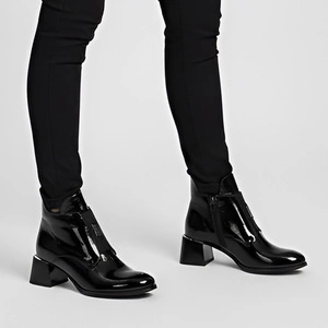 Czarne Botki Armodo Stylowe Lakierowane Obuwie Damskie