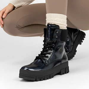 Botki damskie Rieker, na grubej platformie i ocieplane futerkiem, czarne, Y0220-14
