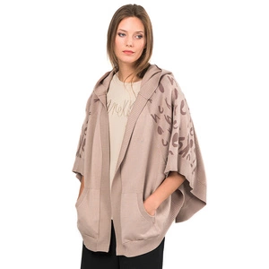 Beżowe Damskie Ponczo Z Kapturem Anekke