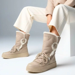 Beżowe Botki Armodo Bardzo Ciepłe Obuwie Damskie