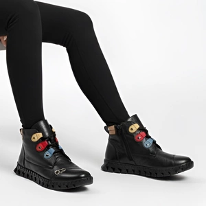 Czarne Botki Artiker Skórzane Buty Damskie