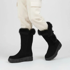 Czarne Kozaki Armodo Ocieplane Obuwie Damskie Z Futerkiem Z Królika