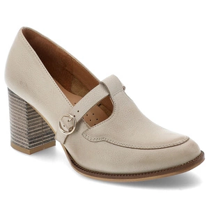Beżowe Półbuty Armodo Skórzane Obuwie Damskie Na Obcasie