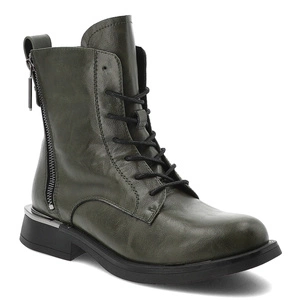 Zielone Botki Artiker Skórzane Obuwie Damskie