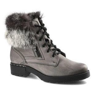 Botki damskie Pollonus, ocieplane z eleganckim futerkiem, szare Samuel, 5-0952-012