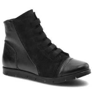Botki damskie Karino, wysoki przecierany nubuk sznurowany i zapinany z boku i na płaskiej podeszwie, czarne, 1804-003-F