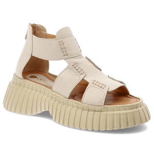 Beżowe Sandały Artiker Śliczne Obuwie Damskie Na Koturnie