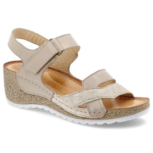 Sandały damskie Wasak, na koturnie skórzane zapinane na rzepy, beżowe mozaika, 757