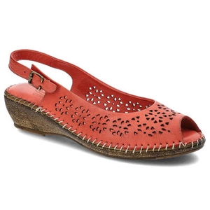 Sandały damskie Helios, skórzane ażurowe i zapinane sprzączką, czerwone, 605