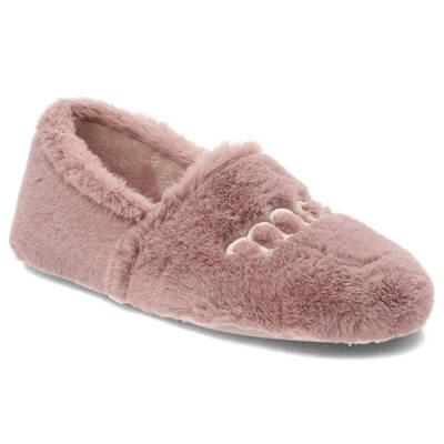 Kapcie damskie Moraj, wsuwane wykonane z dzianiny tekstylnej z naszytą aplikacją zwierzęcą na cholewce miękką wkładką i jasną podeszwą z materiału syntetycznego, różowe, CDWL1500-001
