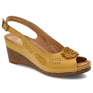 Żółte Piękne Sandały Pollonus Ażurowe Obuwie Damskie