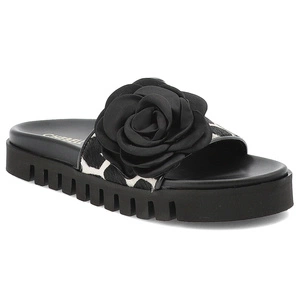 Klapki damskie Chebello, skórzane z ozdobnym kwiatem i na platformie, w motyw żyrafy, 4739-516