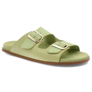 Zielone Klapki Hee Modne Skórzane Obuwie Damskie