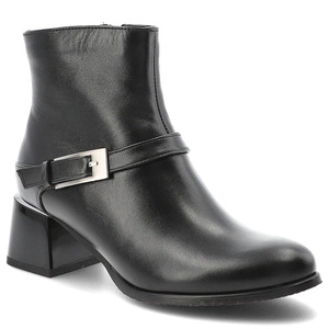 Czarne Botki Armodo Skórzane Obuwie Damskie Na Obcasie