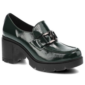 Półbuty damskie Lemar, lakierowana skóra naturalna masywna podeszwa z wyraźnym bieżnikiem ozdobny metalowy element, oliwkowe, 20097-Naplak