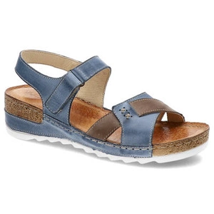 Sandały damskie Artiker, wykonane ze skóry naturalnej licowej z krzyżującymi się paskami z przodu regulowanym zapięciem na klamrę i jednolitą podeszwą, granatowy, 50C0837