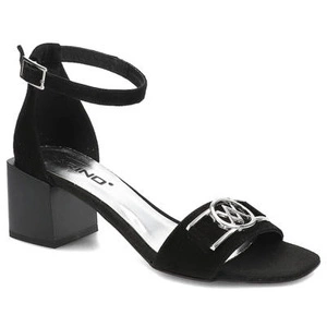 Sandały damskie Chebello, naturalna skóra zamszowa z odkrytym przodem regulowanym paskiem z tyłu oraz stabilnym obcasem, czarne, 2291_037-000-PSK-S22