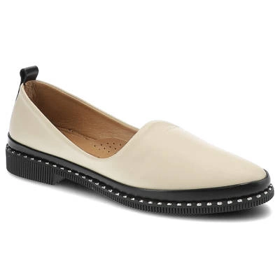 Półbuty damskie Chebello, gładka cholewka z kontrastowym paskiem na podbiciu wsuwany fason bez sznurowania, beżowe, 2899