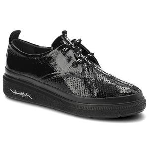 Półbuty damskie Ravini, lakierowana cholewka o wyrazistym połysku klasyczne sznurowanie z dekoracyjną taśmą, czarne, 195-500-2-Czarny-30-T-Prsyh
