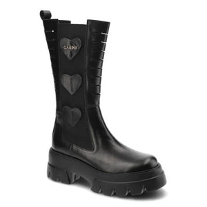 Kozaki damskie Carinii, gładka skórzana cholewka z dekoracyjnymi aplikacjami wysoki krój z elastyczną wstawką, czarne, B7918