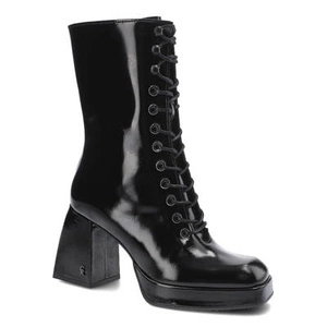 Botki damskie Carinii, lakierowana cholewka o gładkim wykończeniu sznurowanie z metalowymi oczkami stabilny obcas na platformie, czarne, B7597-037-E61