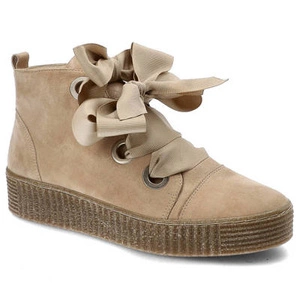 Sneakersy damskie Marshall, skórzane i z elegancką kokardą, cappuccino, 6836-SL