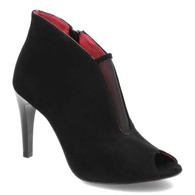 Botki damskie Karino, skóra naturalna na wysokim srebrnym słupku, czarne welurowe, 1615-003-P
