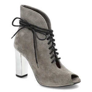 Botki damskie Karino, naturalny nubuk z charakterystycznym głębokim sznurowaniem i wysokim słupkiem, szare, 1615-002-P