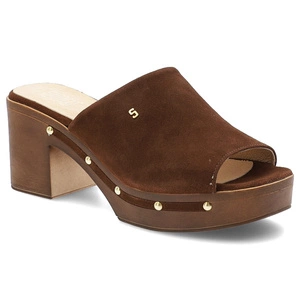 Brązowe Klapki Karino Modne Obuwie Damskie Na Obcasie