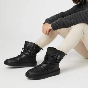 Śniegowce damskie Artiker, cholewka z pikowanego materiału z ociepleniem i regulacją na troczek gruba podeszwa z wyraźnym profilem, czarne, 51C0361
