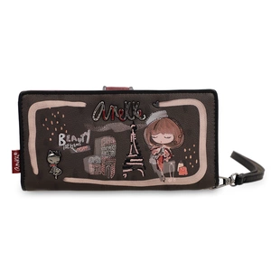 Portfel damski Anekke, duży bogato zdobiony z miejscem na zdjęcia na karty i na bilon, brązowy, 41809-901